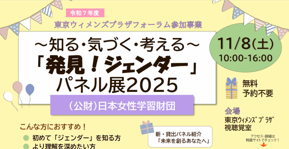 ~知る・気づく・考える~ 「発見!ジェンダー」 パネル展2025(2025年11月8日(土))