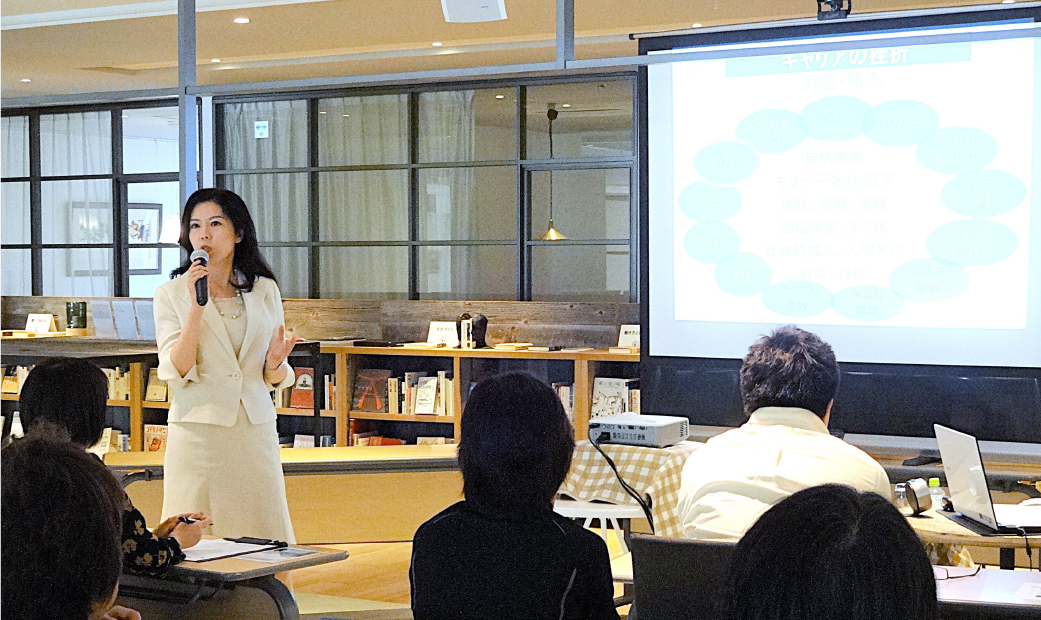 キャリア支援デザイナーとなり、「キャリアの挫折の乗り越え方」をテーマにした企画協働事業を実施しました。就業困難に陥っている方々に、心を削らない生き方や支援についてお伝えし、ピアサポートにつながるグループワークや支援機関の情報を提供しました。さらに、NPOと連携してキャリアコンサルティングも行い、具体的支援につなげました。また、ハラスメント被害でキャリアを失った方々の再起を支援する講座も財団と実施しました。本講座は国際女性会議のサイドイベントに登録され、全国紙にも掲載されるなど、ハラスメント被害者のキャリア再起支援の重要性を社会へ発信する機会となりました。最近では、キャリア支援の世界的潮流である「社会正義(Social Justic)」をテーマに、誰ひとり取り残さない社会をめざし、国家資格キャリアコンサルタントの活動を支援する講座も開催しました。現在は大学で教鞭を執るほか、企業からのお声がけにより、キャリア研修やメンタルヘルス研修、ウェルビーイング経営支援も行っています。自治体や公的機関からのご依頼も多く、参加者の方が「当社の研修もお願いしたい」とご指名くださるなど、出会った方々とのご縁で活動が広がっていきました。
