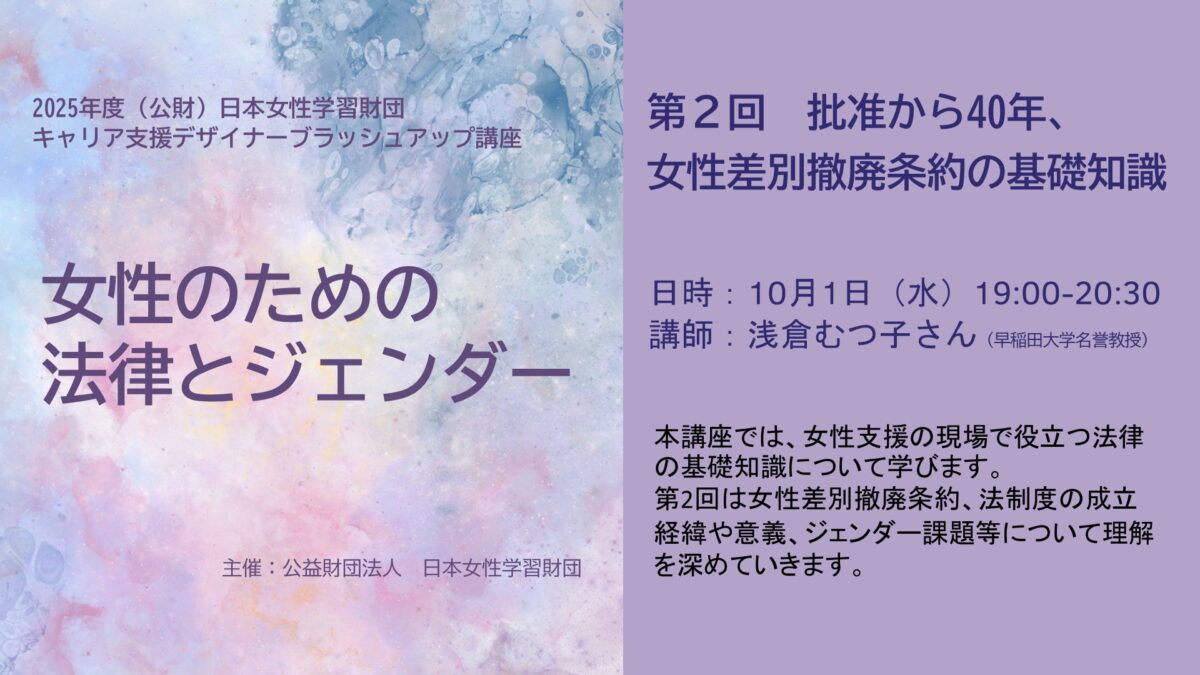 「女性のための法律とジェンダー」第2回「批准から40年、女性差別撤廃条約の基礎知識」開催報告(2025年10月1日(水)) 2025年度(公財)日本女性学習財団キャリア支援デザイナーブラッシュアップ講座