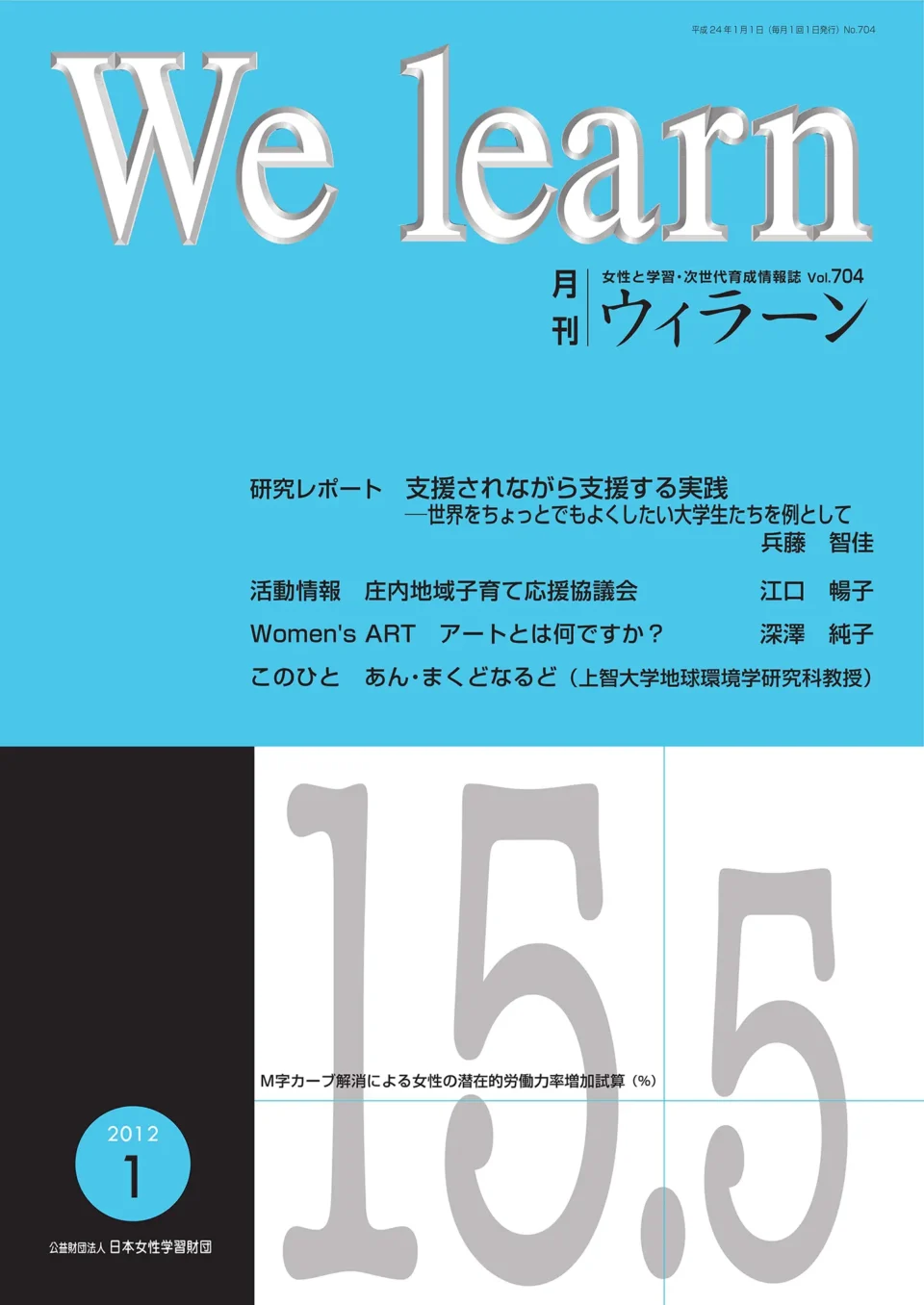 現代は、多様な分野、境遇、年代にある女性たちが、力をつけるための学習の必要を自覚し、自らの気づきや、より適切で有効な手法での学習を、日常の場でそれぞれが開拓する時代に入っていると思います。『We learn』はその営みを総称する合言葉となり、学びへのきっかけづくりや全国的な情報交換の場としてお使いいただけるように、との思いを込めました。