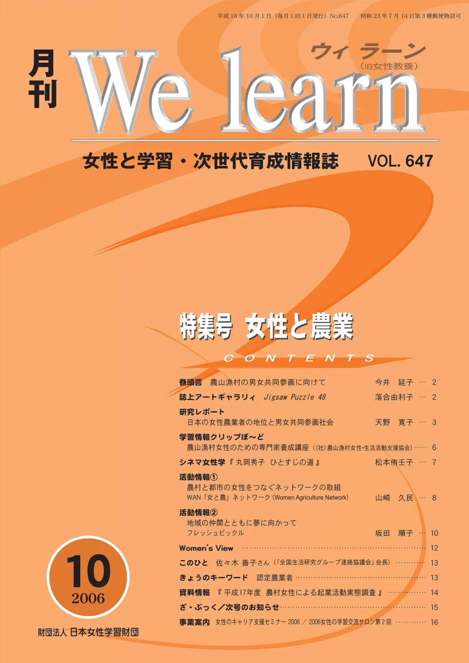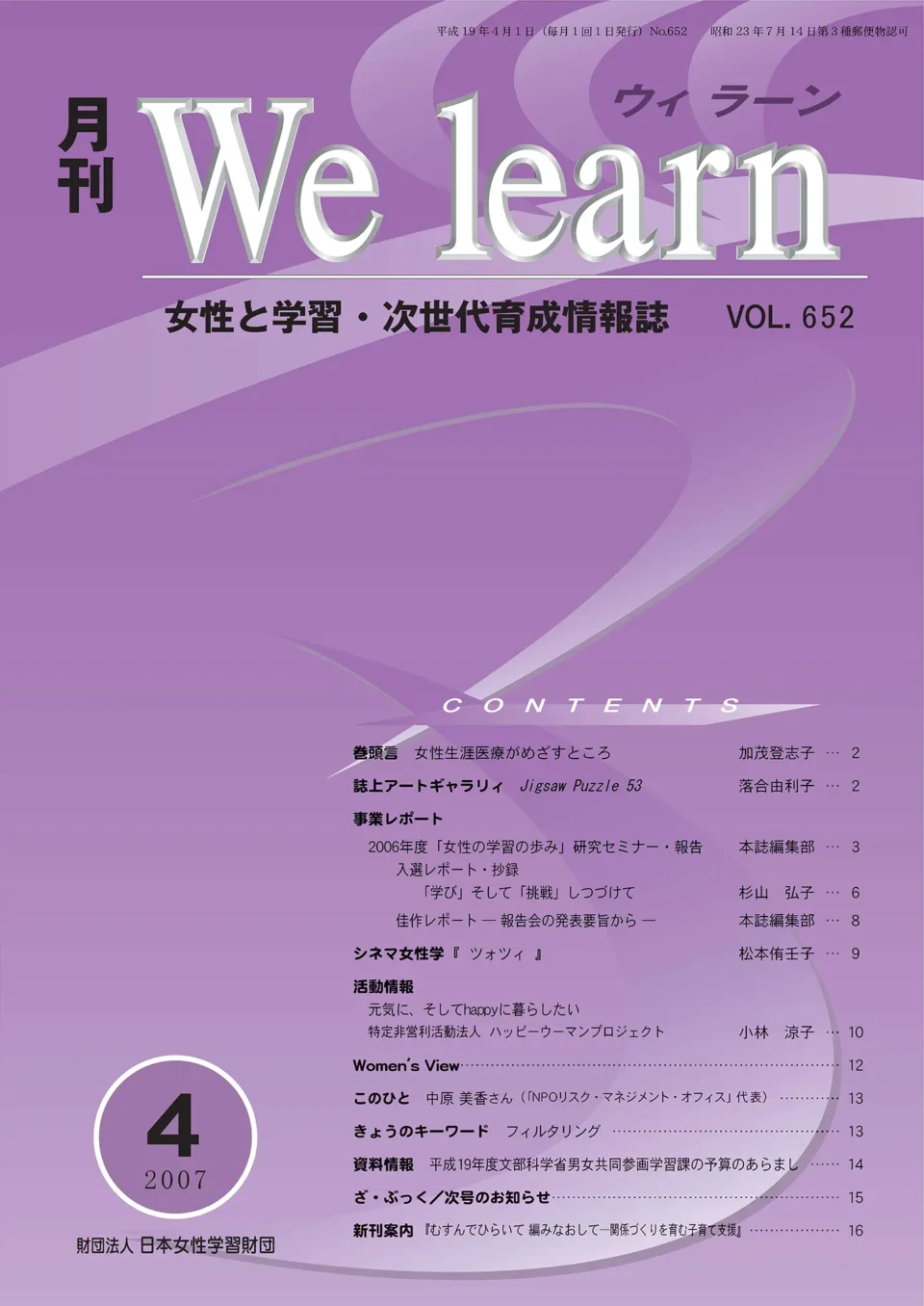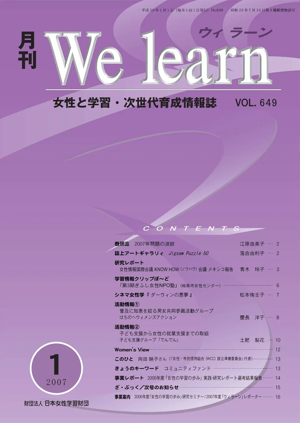 現代は、多様な分野、境遇、年代にある女性たちが、力をつけるための学習の必要を自覚し、自らの気づきや、より適切で有効な手法での学習を、日常の場でそれぞれが開拓する時代に入っていると思います。『We learn』はその営みを総称する合言葉となり、学びへのきっかけづくりや全国的な情報交換の場としてお使いいただけるように、との思いを込めました。