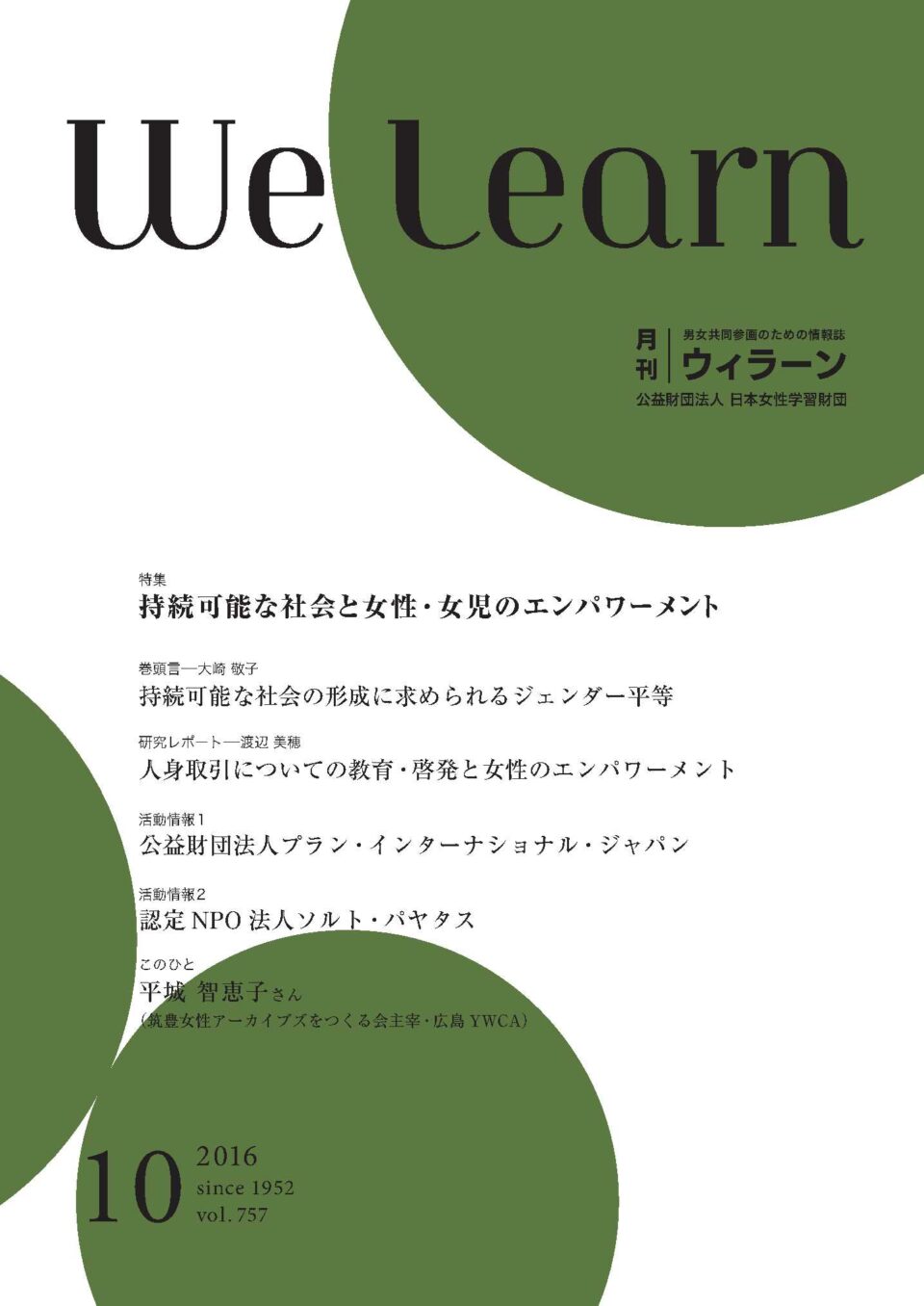 月刊『We learn』(ウィラーン)は男女共同参画のための情報誌です。